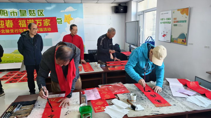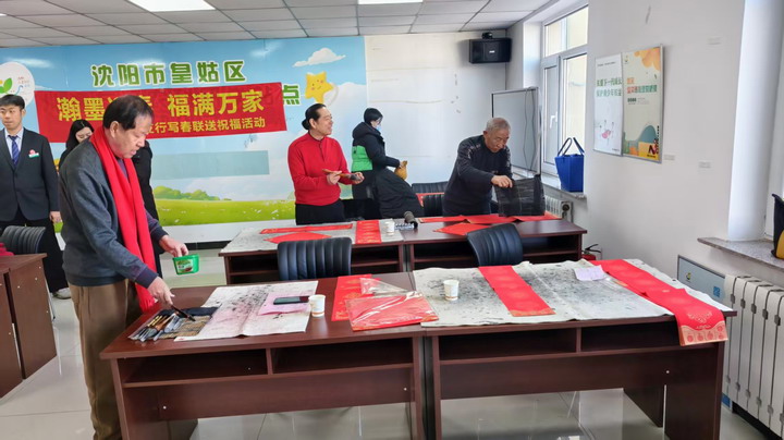 红纸铺案承文脉,墨香溢彩聚民心。在2026丙午马年新春佳节即将到来之际,为深入践行“两邻”理念,让中华优秀传统文化浸润基层,沈阳翰墨书画院组织多位知名艺术家走进沈阳市皇姑区鸭绿江街道观音社区,开展“翰墨迎新春,福满万家”公益送福活动。艺术家们以笔为媒、以墨传情,将满载新春祝福的春联与“福”字送到居民手中,让浓浓的年味与文化暖意充盈社区的每一个角落。